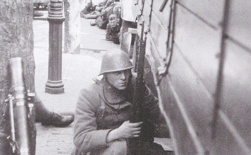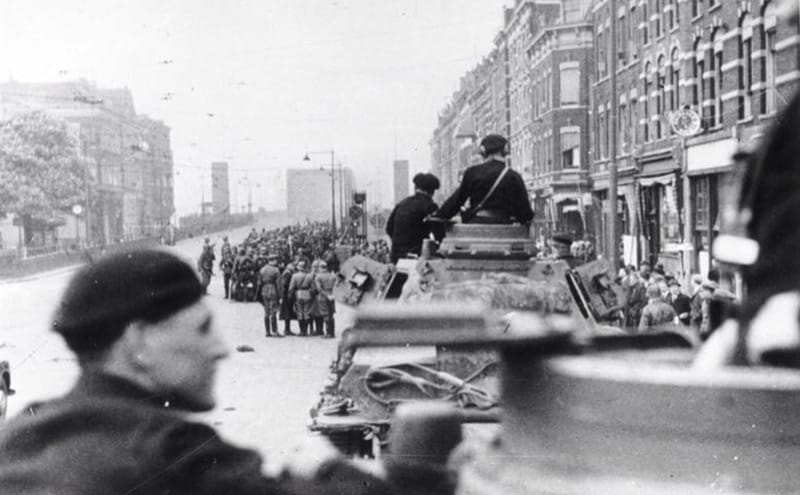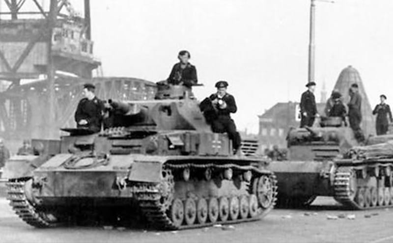 Foto:1 Op foto is te zien (J.L. Van der Pauw, p.58 2011) hoe Nederlandse militairen in dekking zijn achter vrachtwagens aan het Maasfront in Rotterdam. J.L. Van der Pauw, Rotterdam in de Tweede Wereldoorlog, (3de druk). Uitgeverij Boom. | Foto:2 4umi, Gedownload op 9 mei 2015 »» | Foto:4 Wikimedia, Rotterdam, Einmarsch motorisierter deutscher Truppen, Gedownload op 11 mei 2015 »»